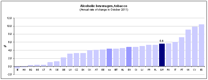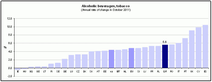 –οι τιμές σε αλκοολούχα ποτά και προϊόντα καπνού αυξήθηκαν κατά 5,6%