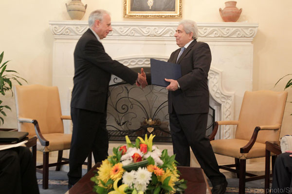 Ο πρόεδρος της Κυπριακής Δημοκρατίας, Δημήτρης Χριστόφιας επέδωσε τη Δευτέρα, στο Προεδρικό Μέγαρο, την Πράξη Διορισμού του Υποδιοικητή της Κεντρικής Τράπεζας, κ. Σπύρου Σταυρινάκη.