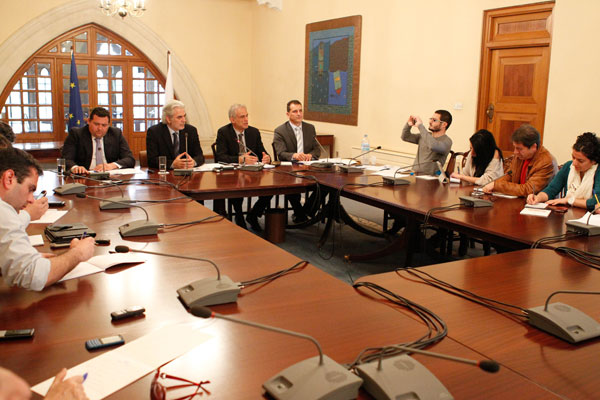 Σε συνέντευξη τύπου παρουσιάστηκαν οι προσαρμογές που επετεύχθησαν από την κυβέρνηση στη διαπραγμάτευση του Μνημονίου με την Τρόικα. Η παρουσίασ έγινε από τον κυβερνητικό εκπρόσωπος, Χρήστο Στυλιανίδη, τον Υπουργό Οικονομικών, Μιχάλη Σαρρή, τον Υπουργό Εμπορίου, Βιομηχανίας και Τουρισμού, Γιώργο Λακκοτρύπη και τον υπουργό Παιδείας και Πολιτισμού, Κυριάκο Κενεβέζο.
